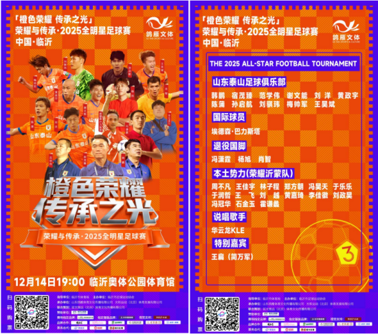 鲁网12月4日讯 (记者 李文静 通讯员 刘婷婷)荣耀与传承·2025全明星足球赛终极阵容正式揭晓!这一次,不只有职业传奇星光汇聚,更有本土力量热血登场——“荣耀沂蒙队”全员集结,正面向山东泰山队职业球星发起挑战!