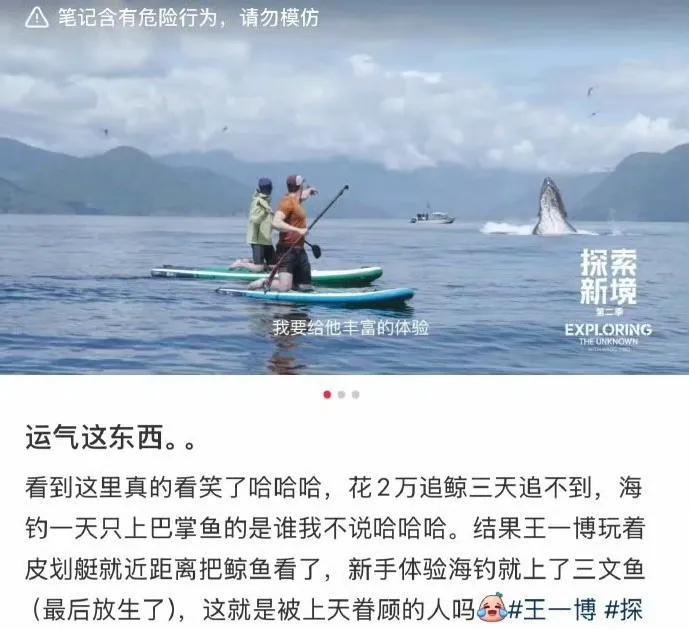 据悉,王一博在户外出行时,不仅划着皮划艇意外近距离邂逅鲸鱼,得以沉浸式拍摄珍贵画面,远超其他游客专程花钱打卡的体验;首次尝试钓鱼便轻松收获上钩渔获,新手光环拉满;