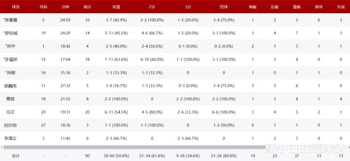 罗欣棫24分钟打卡,11中5,三分5中1,拿到14分7篮板1助攻,命中率45.5%,三分命中率20%,很明显罗欣棫遭遇了严防死守;