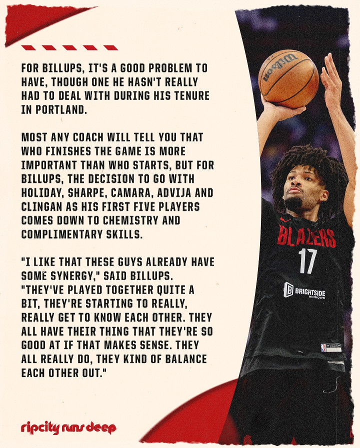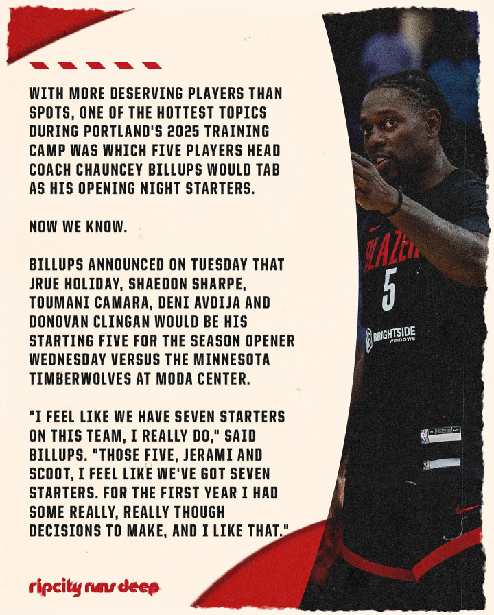开拓者ins报道,在数字媒体记者@caseyholdahl发布的最新训练报告中,昌西-比卢普斯经过深思熟虑后公布了球队揭幕战的首发名单。NBA竞争非常激烈,这是一个充满挑战的环境。