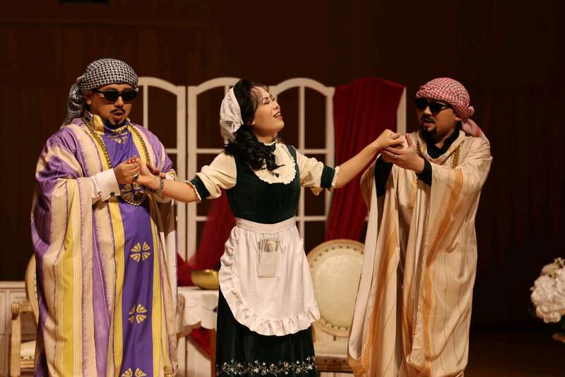 中国青年报客户端讯(中青报·中青网记者李瑞璇)11月13日,河南艺术中心音乐厅内,莫扎特经典歌剧《女人心》的帷幕在钢琴前奏中徐徐拉开。这场由河南大学音乐学院排演的教学版歌剧亮相中原歌剧周,既是一次艺术呈现,也是一次“敢于创新、敢于挑战”的教学实践,为培养实用型、复合型音乐人才探索出一条新路径。在著名声乐教授、教育家韩梅执导下,《女人心》全体主演及钢琴艺术指导均由河南大学音乐学院师生担任。“演唱采用原文,宣叙调采用中文对白”是演出的创新亮点;采用意大利语演唱咏叹调和重唱,保证了作品音乐韵味和风格纯正。中国合唱联盟副主席李仲党表示,《女人心》创作者将推动剧情的宣叙调改为中文对白,彻底打破了观演隔阂。观众无需分神于字幕,能直接通过演员生动的台词和表演,捕捉剧中两对恋人被捉弄时的微妙心理、阿方索的世故狡黠与黛斯皮娜的俏皮灵动。作为导演,韩梅从声乐技巧、语言处理到舞台呈现、戏剧表达对学生进行专业指导。李仲党认为,河南大学音乐学院版《女人心》为音乐表演人才培养提供了宝贵思路。李樽、韩记兵等学生在舞台上与对手演员的眼神交流、重唱中的声部平衡与协作、戏剧冲突中的即时反应,都是成为“实用型人才”不可或缺的核心素养。